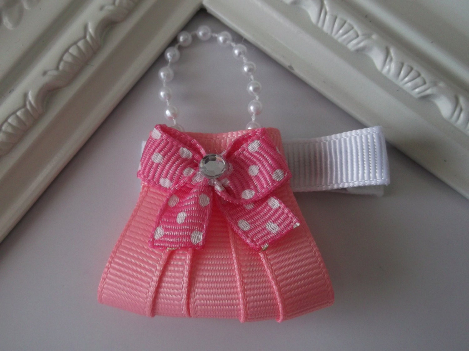 The purse is pretty simple. As always make sure to take the time to cut and test out the size of your ribbons (especially in comparison to the clip) before ANY gluing. The hardest part of this clip was the bow on the purse. There is a really easy video on YouTube to help make the bow. I like this pattern because the purse is really easy and you can make it in lots of different colors and styles.